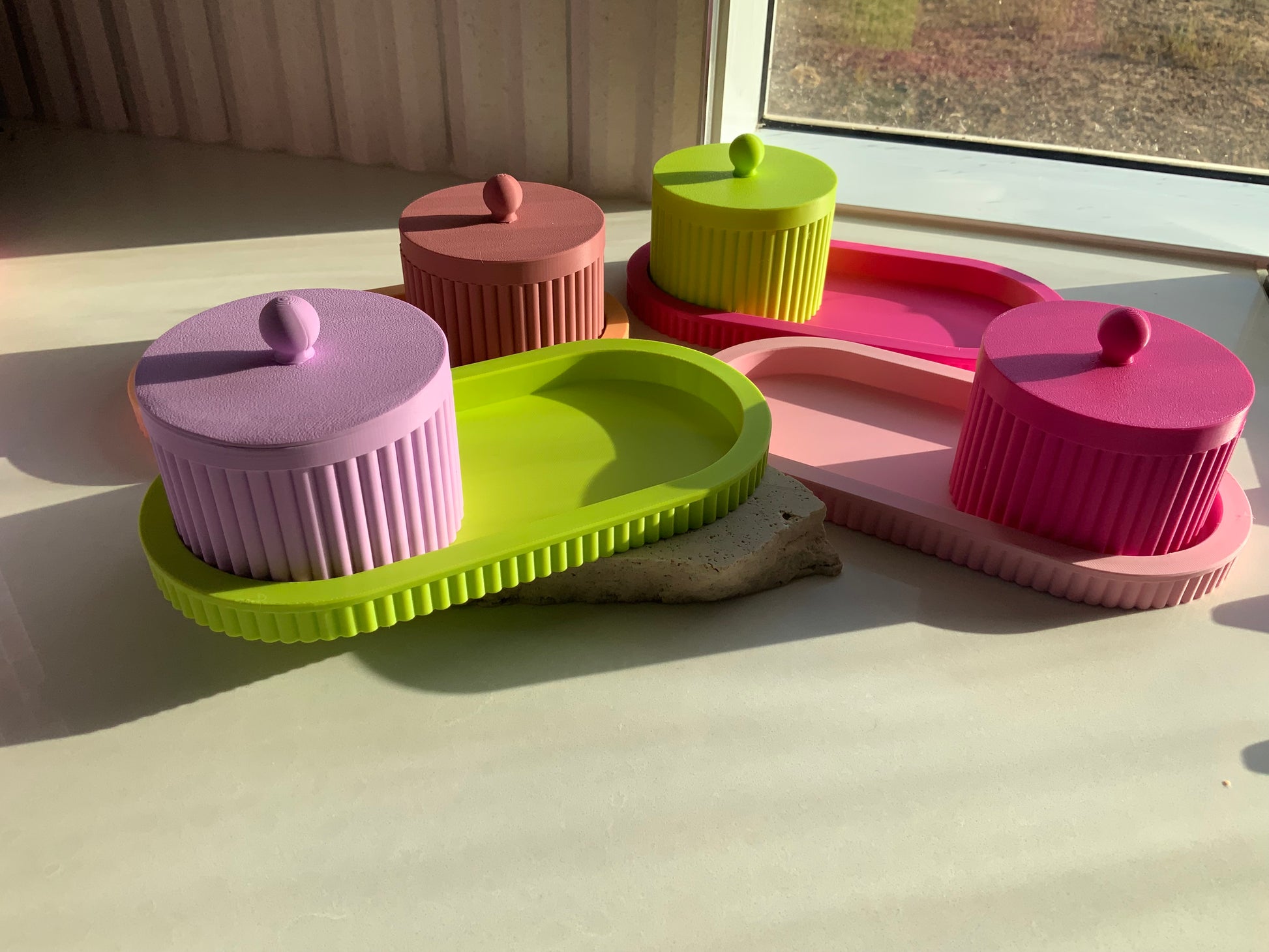Add a pop of colour and contemporary style to your space with this sleek 3D-printed tray! Designed with a ribbed texture and a smooth matte finish, this tray perfectly compliments the matching. These trays are a chic addition to any vanity, kitchen, or workspace.