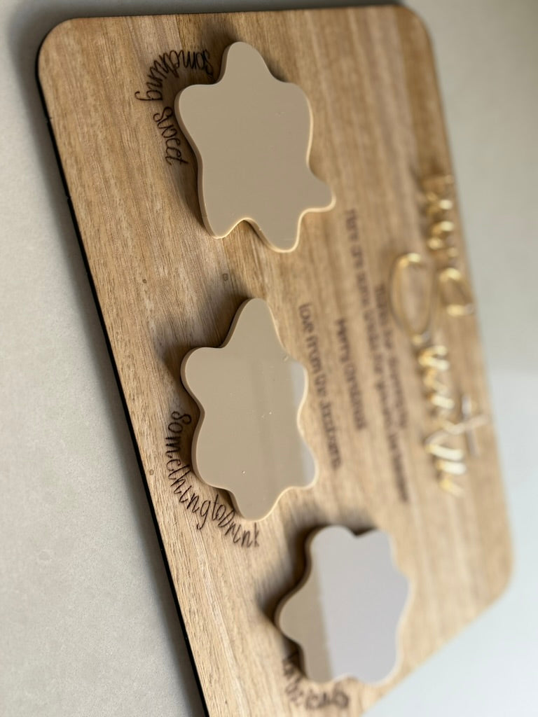 Whether you prefer a minimalist engraved look or one of our deluxe styles with mirrored acrylic accents, each design can be personalised with your family name, making it a treasured part of your Christmas Eve tradition for years to come.