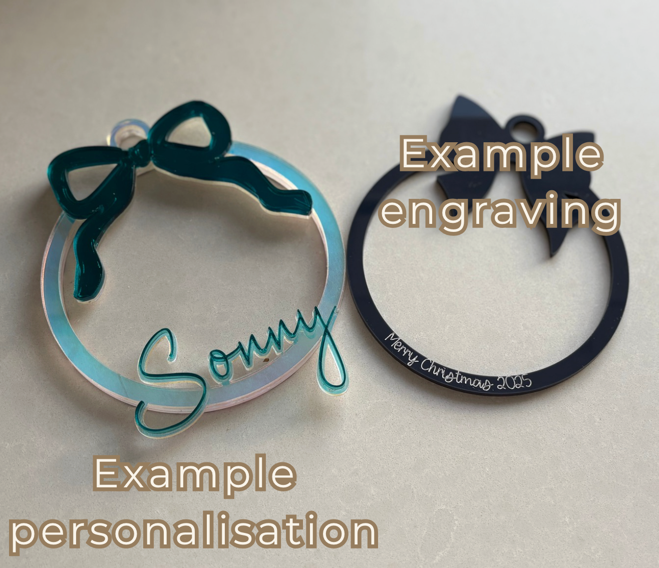 - Fully customisable colour of your choice for the ornament and any design additions such as bow and name.
